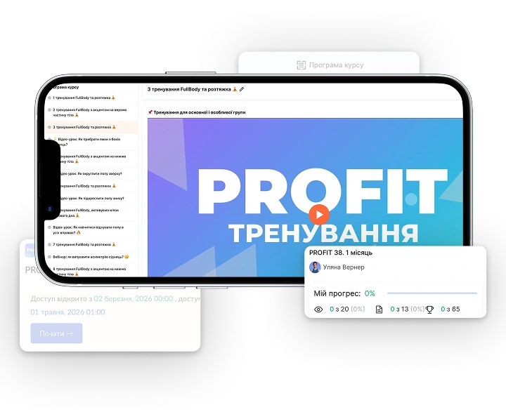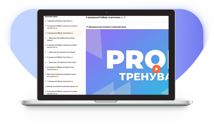 - Зручна навчальна платформа, де всі тренування, персональне меню та вебінари завжди під рукою у твоєму смартфоні.